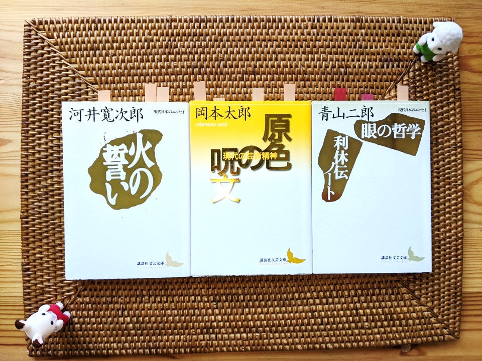 1冊目は大正から昭和時代に活躍した陶芸家・河井寬次郎のエッセイ『火の誓い』。陶芸の要素である土と火への祈りが込められていました。
