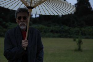 成田山では近江ARSメンバーから贈られた和傘を撮影する予定だったが、雨が降ってきたため車に乗り東京に戻る。車窓につく雨粒が増えてきた頃「ここで撮ろう」と校長が指差した。そこはちょっとした空き地だった。校長はトランクに詰め込んでいたジャケットに着替える。雨の中、撮影が始まる。「もう少し傘を傾けてください」初めてポージングの指示をした。