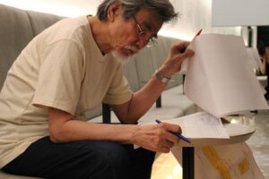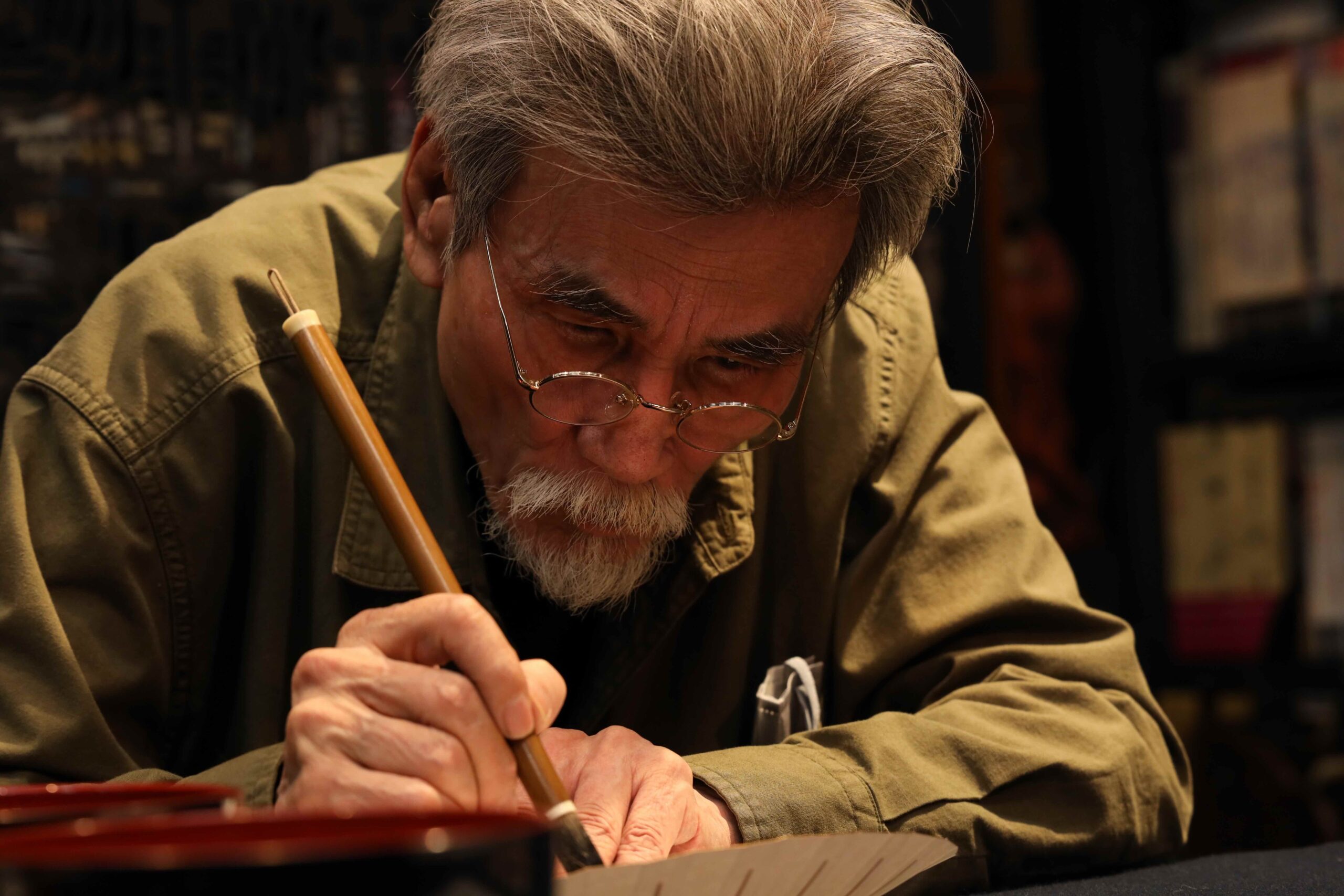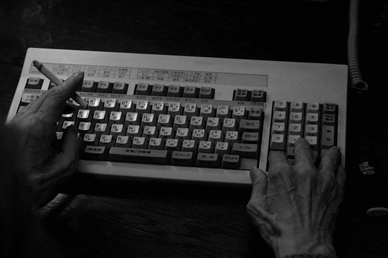 編集学校の師範には校長から直筆の書が贈られる。その書の日には何度か立ち合うことができた。「書は人のために書く」と言っていたように、師範一人一人へ時間をかけて書を書き上げる。私は校長が何かとても小さいものに向かっていくところを撮ってみたいと思っていた。とりわけ書に向かうときは、そういう瞬間があったように思う。
