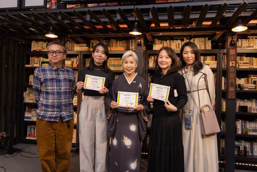 ISIS花伝所での演習を修了(放伝)すると師範代認定証が師範から授与される。しろがね道場で切磋琢磨した仲間たちとともに。道場での指導にあたったのは、岩野範昭花伝師範(左)、渋谷菜穂子錬成師範(右)、大濱朋子錬成師範。