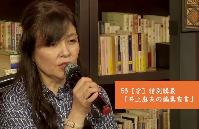 井上麻矢氏は、井上ひさし氏の三女であり、劇団こまつ座の代表であり、イシス編集学校[守]の卒門生でもある。2012年、第12期[守]胸中サンズイ教室(師範代:中野由紀昌)で常にトップ回答を放っていた当時の編集稽古の思い出は、12年を経て53[守]特別講義「井上麻矢の編集宣言」で語り直された。松岡校長によると「麻矢ちゃんが編集学校で学んでくれたのは、「型」なのである」と千夜千冊1625夜『夜中の電話』で明かされている。2016年に書かれた同千夜千冊では、イシス編集学校を託すことに触れ、「きっと複数の麻矢ちゃんを選んで校長複合体になってもらうのだろうと思う」と松岡校長が綴っていたとおり、井上麻矢氏は9名のISIS co-missionの一人として就任した。