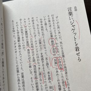 「こくご」について寝ても覚めても考えている今、追伸の「言葉にジャケットを着せる」というフレーズが、以前にもまして鮮やかに飛び込んできた。