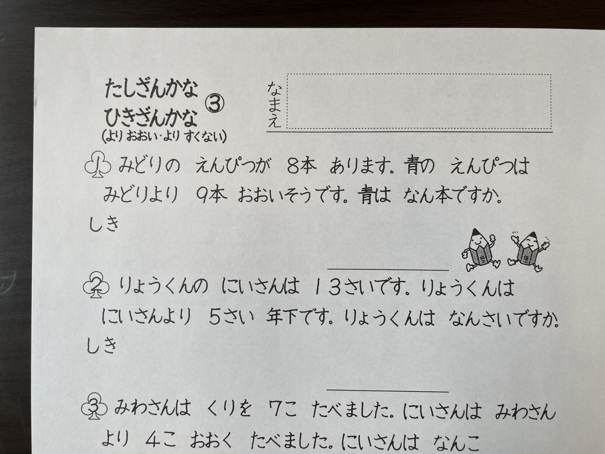 プリントの場合、算数の問題が続いているのだからもしかしたら「たしざん」のことなのかなと思いつく力や一気呵成に読まないある種のスローさが必要なのだった。