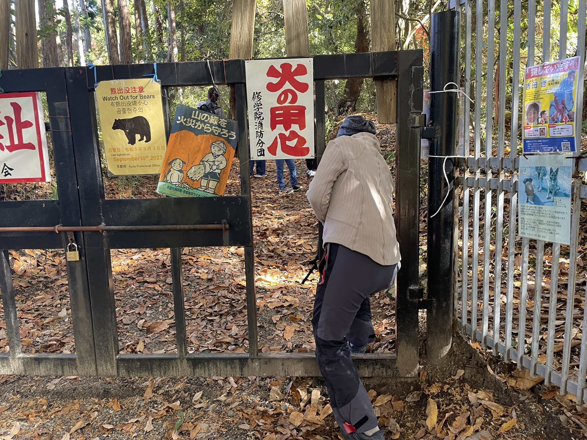 瓜生山の登山口には柵があった。マウンテンバイクで山を走る人が増えてきたからだという。柵をすり抜けていくのは、禁をやぶっ