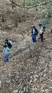 一人一個、ミカンを手に持ってハイキング道に戻る。