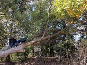 弥生さんがさっとのぼり、幹に腰掛ける。他の大人ものぼる。