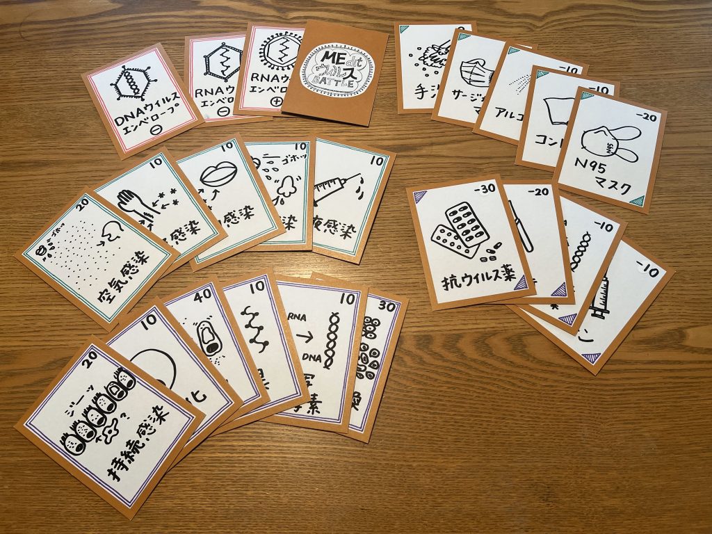 途中、ブラッシュアップをしながら、点数配分を変える必要が出てきて、白い紙を貼って点数を変更したりしている。アマゾンで無地のカルタを購入してサインペンで描いたが、カードの表があまりに淋しくて、表のイラストも凝ったりした。懐かしい思い出。