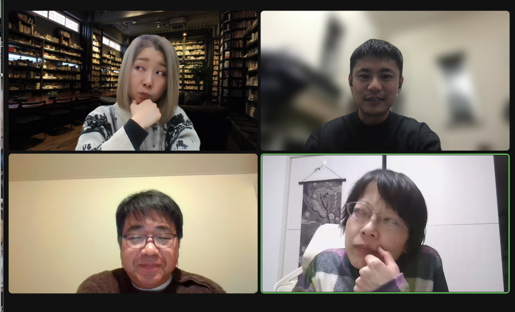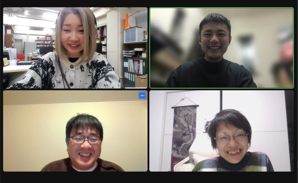 ZOOMの画面に映るのは指導陣4人だけ。衣笠純子の柔らかく包み込むような温かい声で、大人のトークタイムだね〜のセリフが印象的。ここで編集とは何たるものか思い出してほしい。
