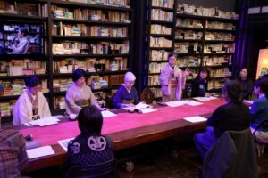 狂歌には元になる「本歌」がある。優子宗風が先刻の講演で「江戸文化は外国から入ってくるものと、日本の過去にあるものを素材として使った」と言っていたことが頭をよぎる。外と内(歴史)、どちらともつながるのが江戸人の真骨頂だ。とはいえ令和に生きるなか、EDO風狂連連中、和歌に深く親しむものがどれほどいるのか。