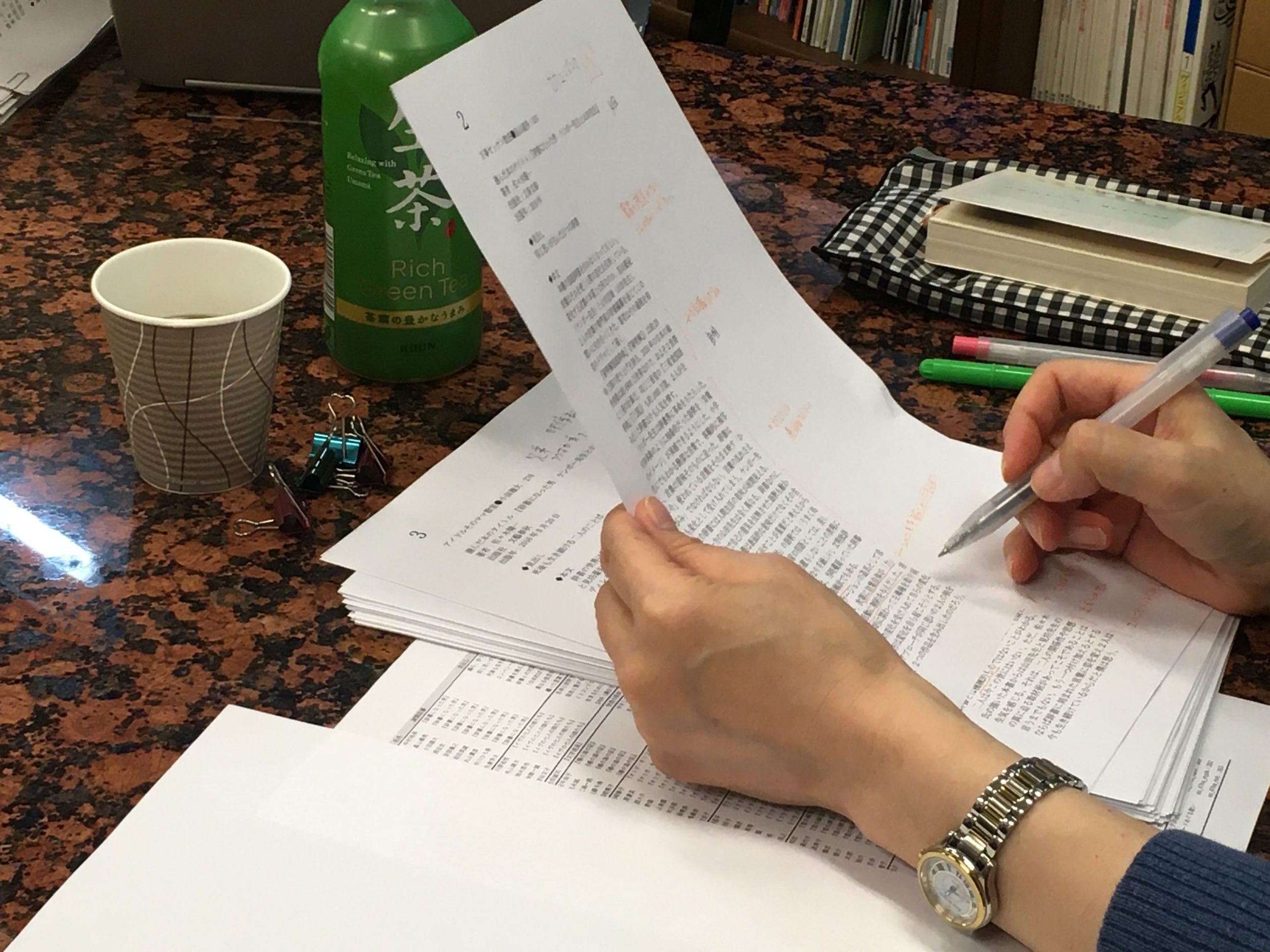 選評委員11名の手元には、68枚の創文が積まれている。締切直後から会議当日朝まで、各委員は一週間かけて赤ペン片手に全作を読み込む。なぜこのキーワードを選んだのか、ほんとうにこのハコビが適切なのか、師範代はどのような導きをしたのか。少しでも気になることがあれば稽古模様にも立ち返りながら、読み進める。