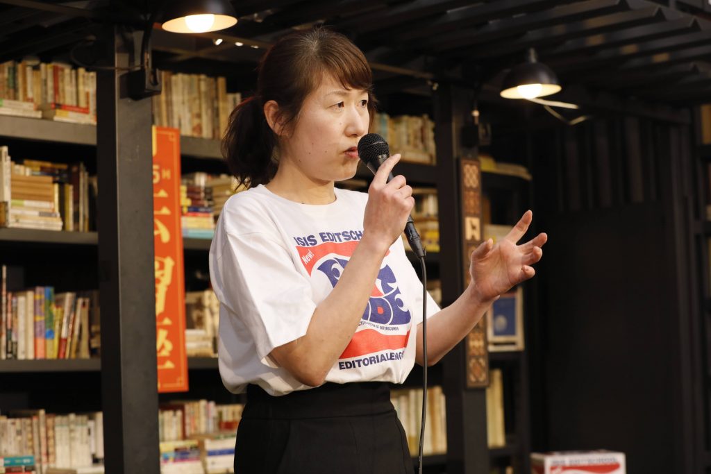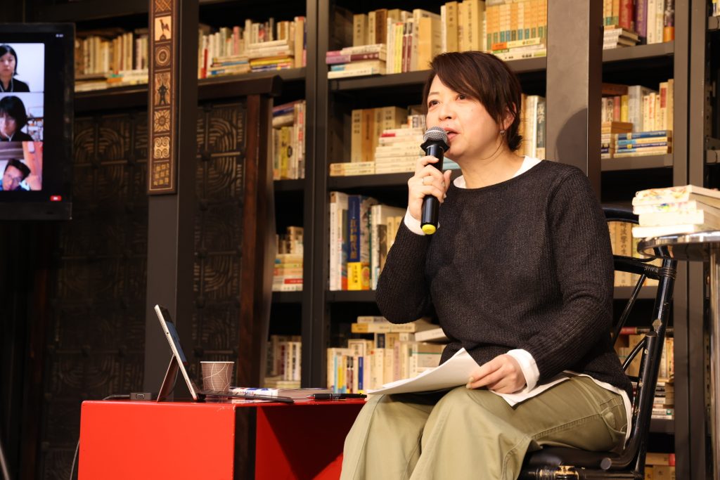 ▲前夜、[守・破・離]三講座の学匠・総匠が揃った三匠会議の場で、校長の第一声が「託したい」だったと明かした鈴木康代[守]学匠。校長からのお題を引き受け、「守・破・離という大きなスコープのなかにある[守]」という鳥の目と、「小さなひとつの回答にも世界がある」という虫の目、この両輪で53[守]はいきたいと語った。新師範代たちは事前に課されたお題にも果敢に取り組み、過去期と比べても群を抜くラウンジ発言数だったという。EDIT TIDEのTシャツを着た康代学匠の「みなさんならいける!」という激励によって、新師範代のEDIT TIDE(編集態度)もさらに勢いづくに違いない。