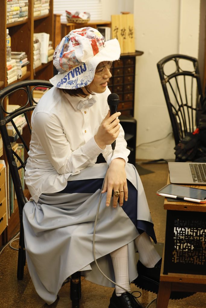 ▲10期前の42[守]から先月幕を下ろしたばかりの52[守]まで、さまざまな期で[守]師範代を担った者たちが一座を組む。師範代のプロフィールの多様さが52[破]の魅力だ。なかでも[守]入門から休むことなく走り続けてきたふたりの初々しさと真剣な眼差しが目を引いた。バイク女子でもある変速背負投げ教室の石井晴美師範代(上)は目から好奇心のハイビームを出し続け、語部ミメーシス教室の高田智英子師範代は熱心にメモをとってミメーシスの準備は万全(下)。「中高と柔道をやっていて、柔道稽古のようにぶつかりあう教室にしたい。得意技は袖釣込腰です♡」(石井師範代)、「世界と未来をつなぐ、いまの時代の私たちにしか紡げない言葉を学衆さんとともに見つけていきたい。紋切型を打ち破っていきたい。」(高田師範代)