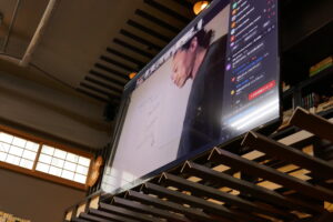 ▲師範、番匠はお題語りでは語り方にもインタースコアを起こしていく。渡辺は板書を駆使し、ZOOMでありながら動きのある講義を繰り広げた。
