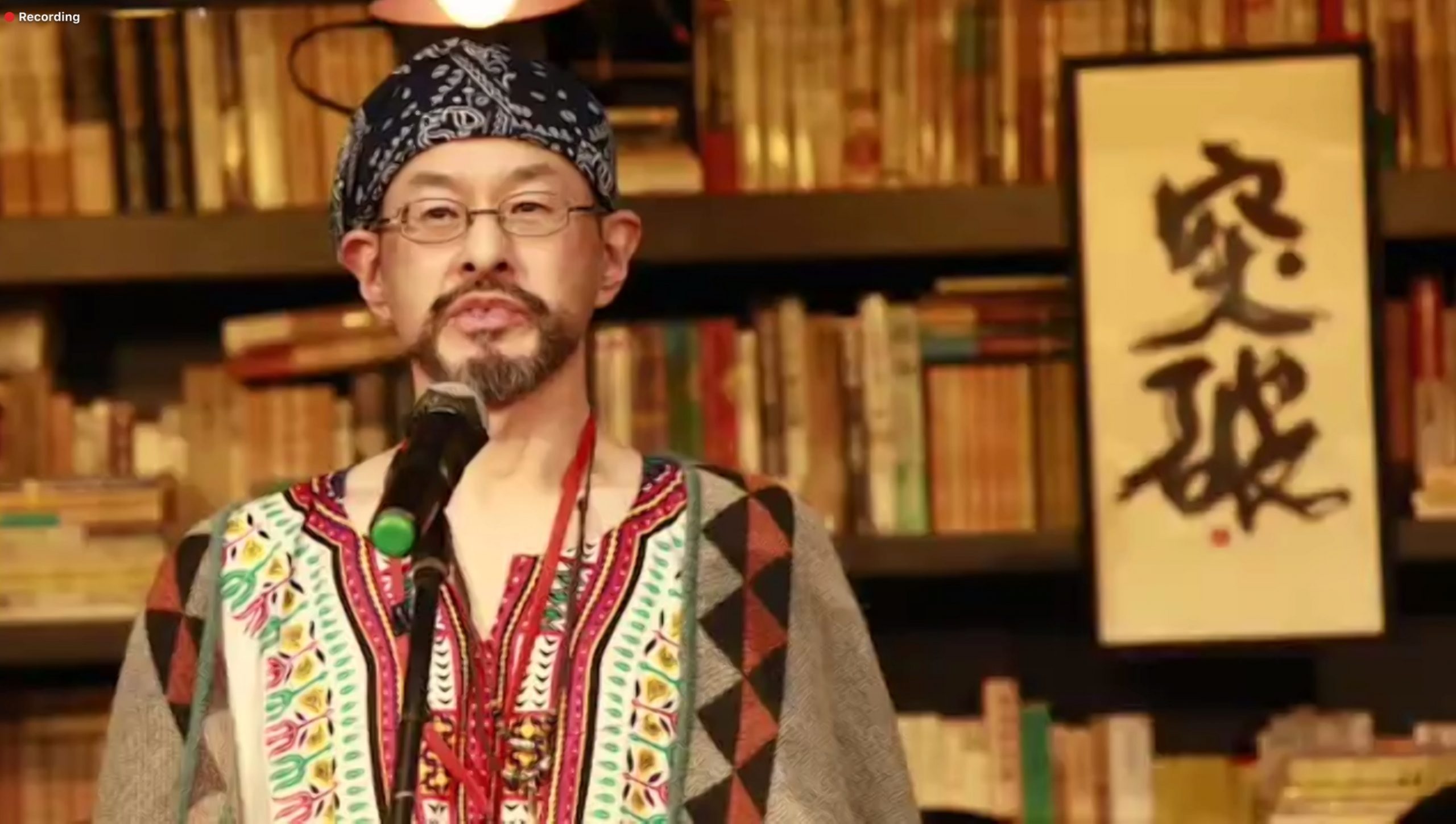 翌日はバニー師範がホワイトスーツに赤いポケットチーフという白バニーの出立で進行役を務める。あれ?と感じて自分のイメージが茶色いうさぎだったと気がついた。そして、いよいよ堀田師範代の登場。赤・緑・黄色の彩り豊かな民族衣装でステージでもひときわ映えている。贈られた『チューリングの大聖堂』を携えて嬉しさが目尻に表れている。感情を抑えた話しぶりからはかえって師範代の熱い思いが伝わってくる。自分も稽古でのやりとりを思い出し、気づくと感謝の2文字をチャットに書き込んでいた。ブレイクアウトでは破同門の顔が並び、色々と助けられた4カ月間の稽古の日々がフラッシュバックした。