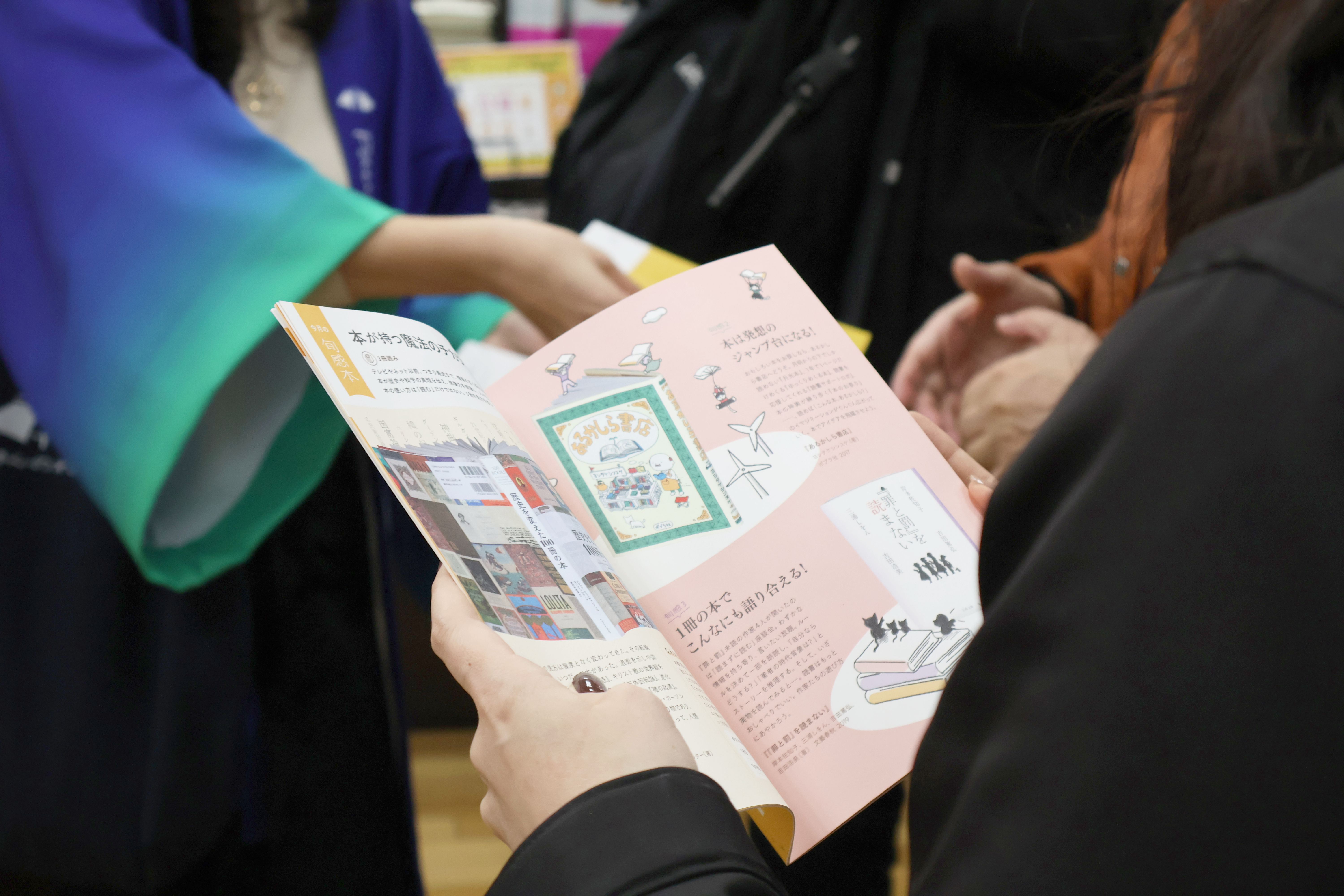 1階エントランスを入ってすぐの場所に「ほんのれんフェア」(~3月23日まで)のコーナーを発見。通常は一般販売していないほんのれんオリジナル冊子『旬感ノート』全23種類や、ほんのれん編集部が選りすぐったリベラルアーツ100冊を紹介する冊子『百考本カタログ』が特別販売されていました。タイトルを見て気になった旬感ノート「vol.21 なぜ、わかりあえないのか?それぞれの物語を越えて」を手に取ってみると、テーマに関連した5冊+αの本紹介ページが面白くてたまらず……どれどれ他の旬感ノートも……となりかけたところで、おっといけません。そろそろイベントが始まるのでまたあとで。