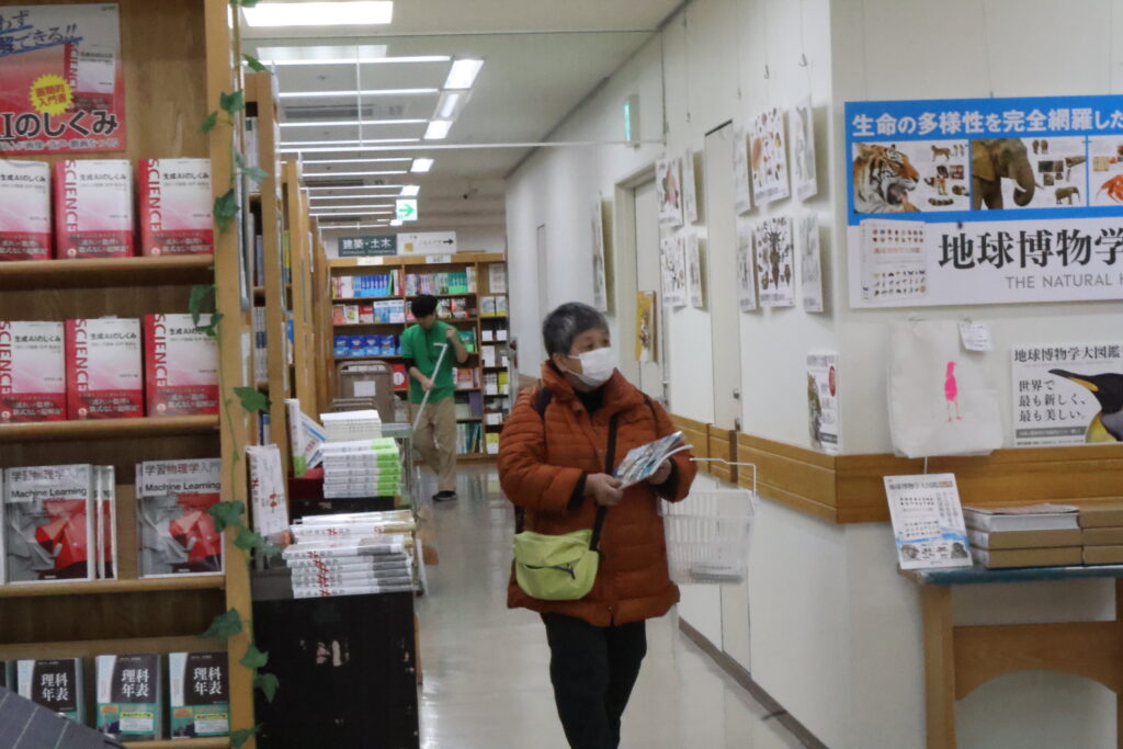 フロアの奥のほうまで行く方もいれば、ひとつの棚をじっくり吟味する方もいます。