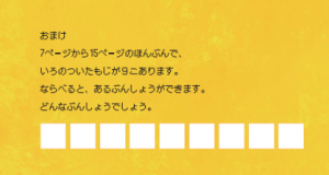 裏表紙には、ちょっと難易度の高いのおまけコーナーがついている。さがす遊び、大人と子どもで競ってほしい。