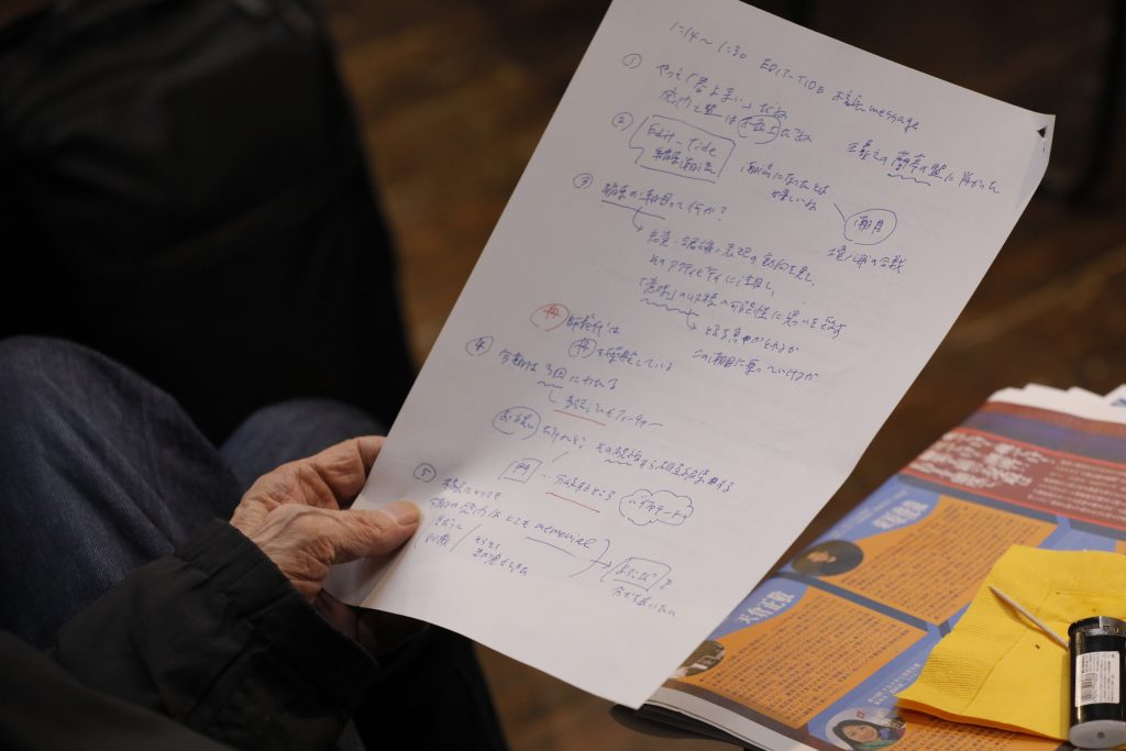 「(10周年記念感門之盟に感動したという話をうけて)その場で即興でやっているように見せたけれども、ものすごく準備をした。そして本番は準備したものをばあっと捨てた。自分がそこでハッとしたものを使う。そういう感受性を活かしてやったんだけれど、それだって相当な準備が必要なんです。緊張するのもぜんぜん構わない。だけど緊張や困惑も含めて『自分でつくろう』と思っていないとダメ。みんなつくらないんです。すごく横着。普段からもっとやり続けないと」