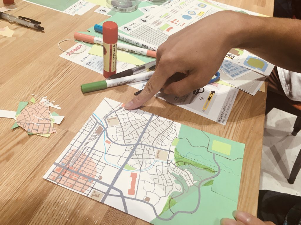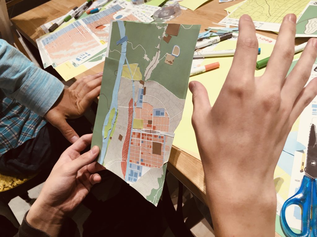 地図づくりが始まって30分。だんだんと架空の街が姿を表してきた。