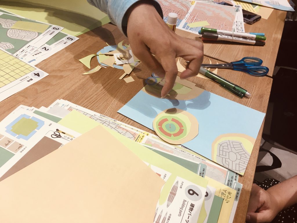 ワークショップ中、今和泉さんをおおいに驚かせのは、地図のなかに前方後円墳が出てきたとき。全国でワークショップを開催しても、古墳が出現したのは初めてだとか。河内には、図書館のすぐとなりに、マンションのすぐわきに古墳がある。そんな地域性が浮き彫りになった瞬間だった。