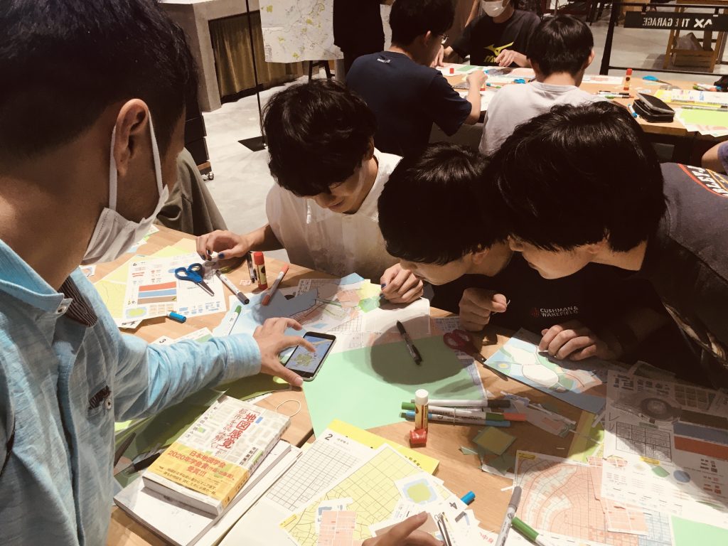 参加者は大興奮だ。アタマのなかにある朧げな構想を、なにげなく切り貼りした紙の断片から読み取ってもらえるからだ。イシス編集学校で、アタマのなかを見通したような指南を受け取る感覚によく似ている。その街に生きる人の顔まで思い描くと、架空の街ではあるが、自分の生み出してしまった街に対してなぜか責任感が湧いてくる。