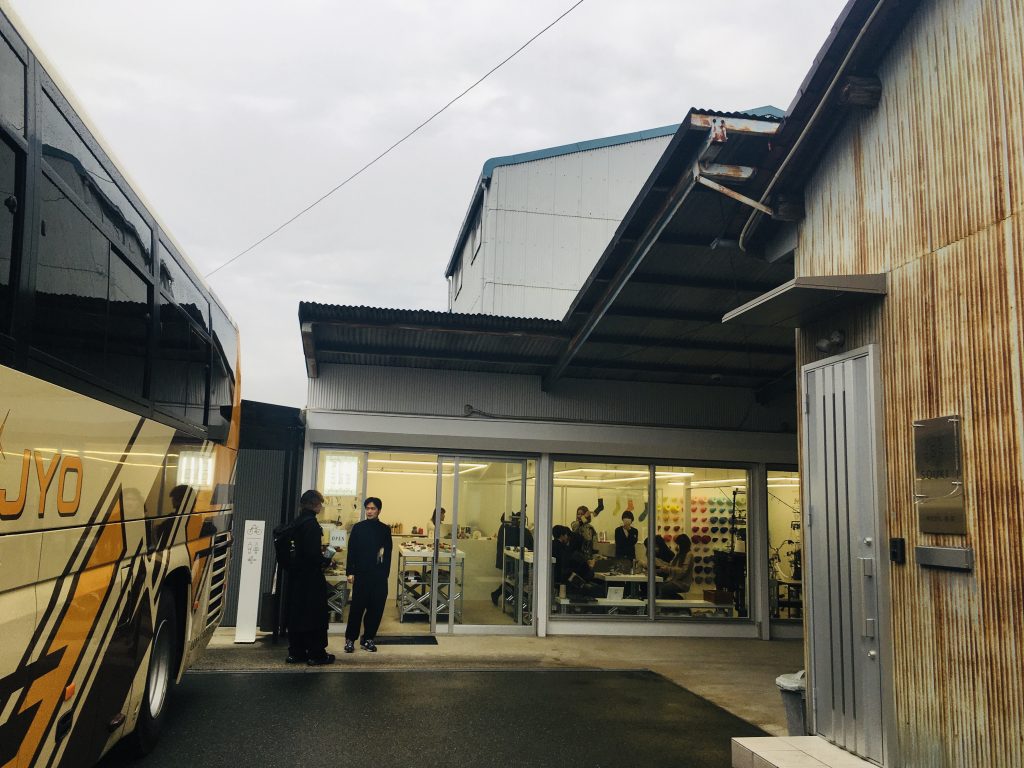 そして、翌日。いよいよ大学を飛び出した編集稽古のスタートだ。ツアーコンダクターは、編工研の衣笠純子。朝9時30分、定刻どおりに近畿大学東大阪キャンパスからバスで出発。2日目の行程は「みる・たべる・つくる」の三間連結、と衣笠が紹介する。