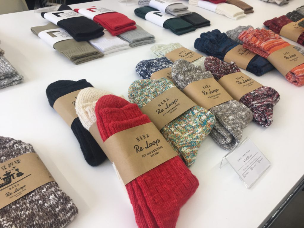 午前中には、信貴山縁起絵巻で有名なあの「信貴山」を参詣。昼食には法隆寺の目の前までバスを走らせ、炊きたての釜飯に舌鼓をうつ。そして、いよいよ奈良県広陵町へ。靴下づくりの舞台である。バスで走ると、こじんまりとした工場がいくつか見えてきた。じつは、国内で作られる靴下の6割は奈良県産。そのうちの1/3が広陵町が担っている。広陵町とは、靴下の町なのである。