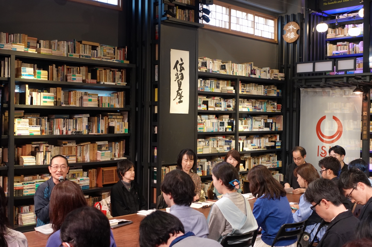 エディットタウンには千夜千冊の本も数多く並べられています。イシス編集学校の講座を「編集思考素」の三間連結で構成する藤原稜三『守破離の思想』(1252夜)や、師範代が教室を運営する際のカマエを示した太鼓持あらい『「間」の極意』(0543夜)がありました。これらを学衆Kさんに紹介します。書物を奉るような様子を見ると、将来、師範代養成コースの花伝所へ進むことをイメージしました。