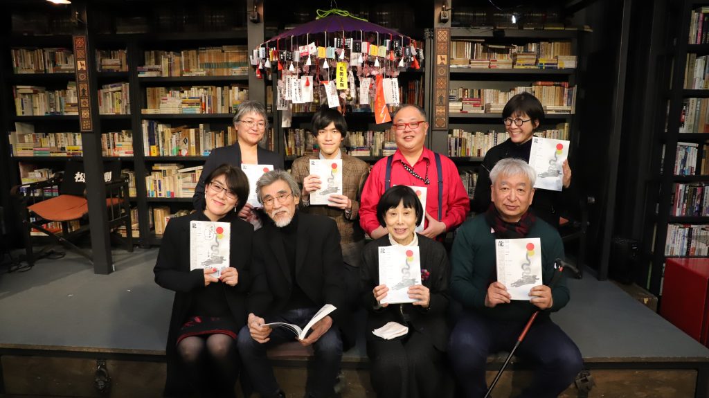 最後に、すべての企画を華やかに彩る「玄氣昇龍選書」をご紹介する。「松岡正剛校長に贈りたい本」を組員が選び抜くという、恐れを知らない子羊のたわむれ企画なのだが(笑)、たわむれの拍車は輪をかけて加速し、なんと和傘オブジェ「玄氣昇龍祝い傘」に化けてしまった! 現在、本楼に吊られている華やかな和傘は『龍』の付録なのだ。たわむれもここまでやればアッパレ! と言わんばかりに、松岡校長も和傘の下にもぐったり、クラウン・ブック(豆本)を一つずつ手に取りながら、子羊たちに囲まれて始終笑顔ではしゃいでいた。