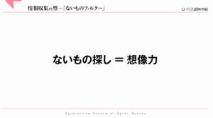 早速、【守】のひとつの方法をワークしてみようということで、米田ナビが取り出したのは情報を「あつめる」方法のひとつである「ないものフィルター」だ。