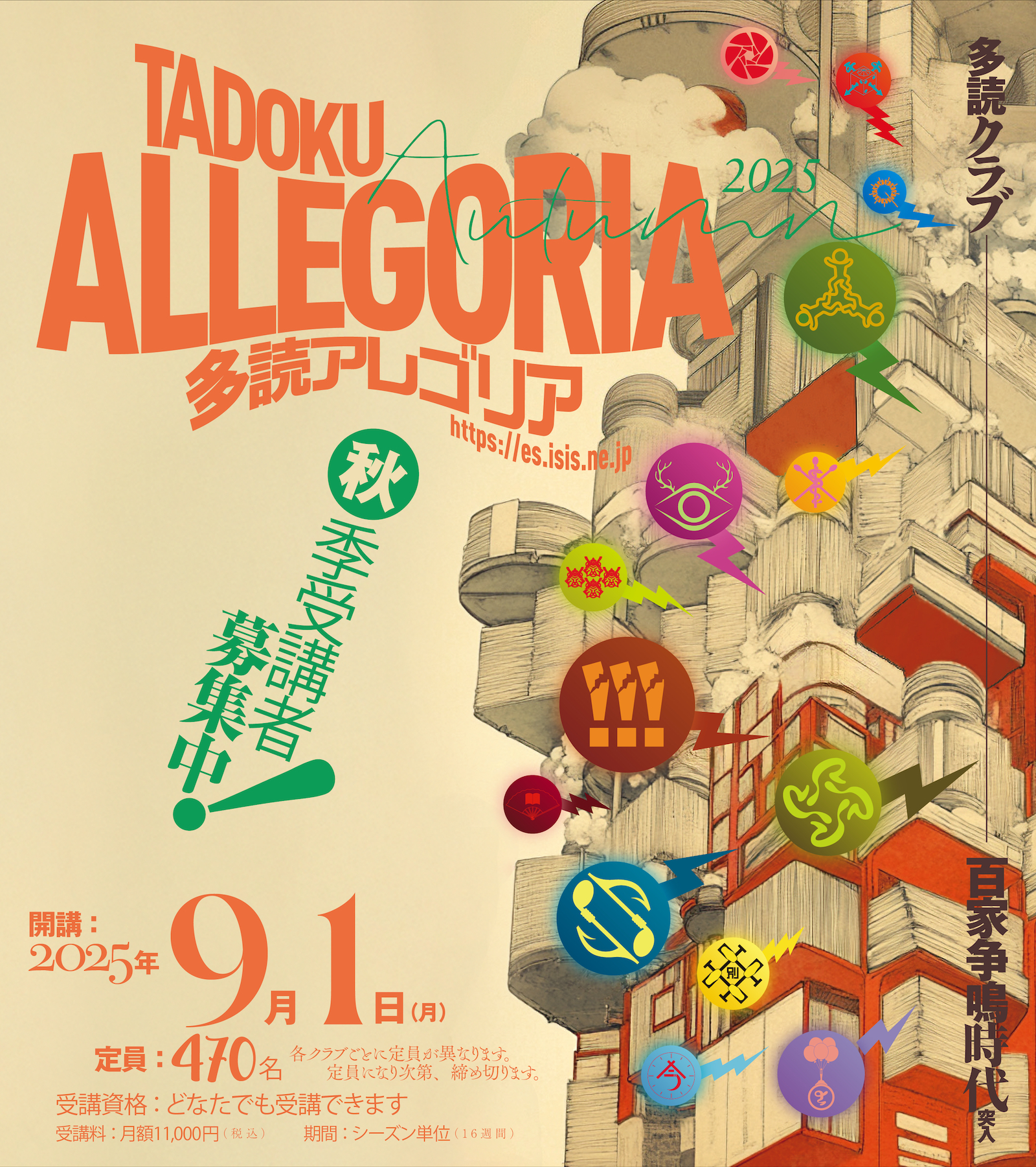 読書の秋はアレゴリア。イシス編集学校とっておきのブッククラブ「多読アレゴリア」2025年秋シーズンの募集がスタートします。秋シーズンの会員期間は2025年9月1日(月)から12月21日(日)です。 秋シーズ […]