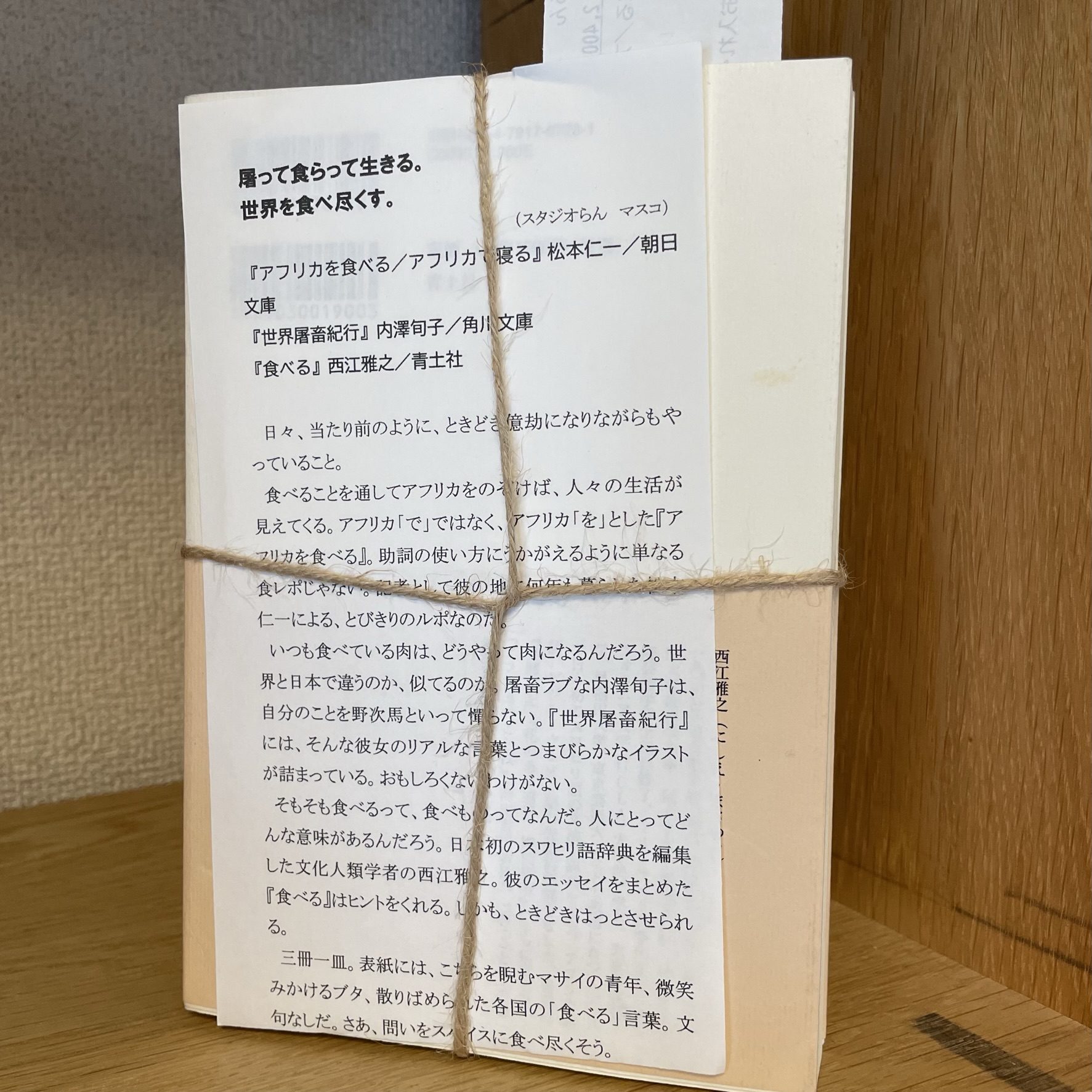 お題のテーマが「食べる3冊」だったシーズン13では、5つの三冊組がスタジオらんから誕生した。麻紐で束ね、レコメンド文付きのセット売りにトライした。
