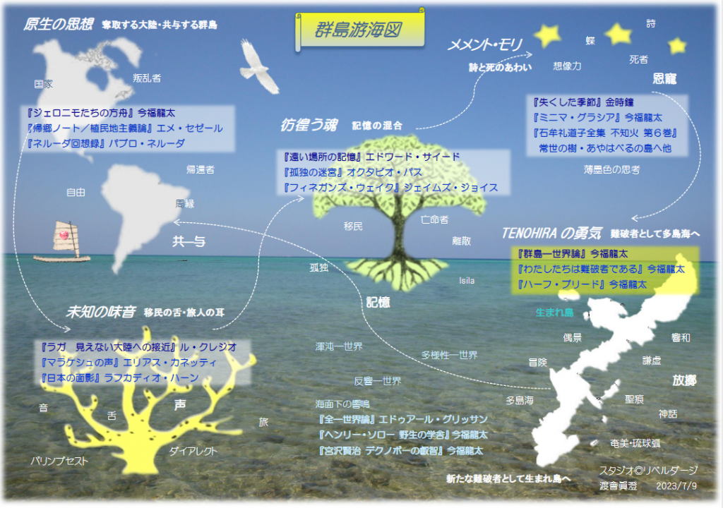 群島は、大陸の果てしない欲望に呑み込まれないための、また別の方法も伝えてくれる。お互いの声や力を共に与えながら協働しあう群島の理解と心性のありようを、エドゥアール・グリッサンは「共―与」という秀逸な造語であらわした。