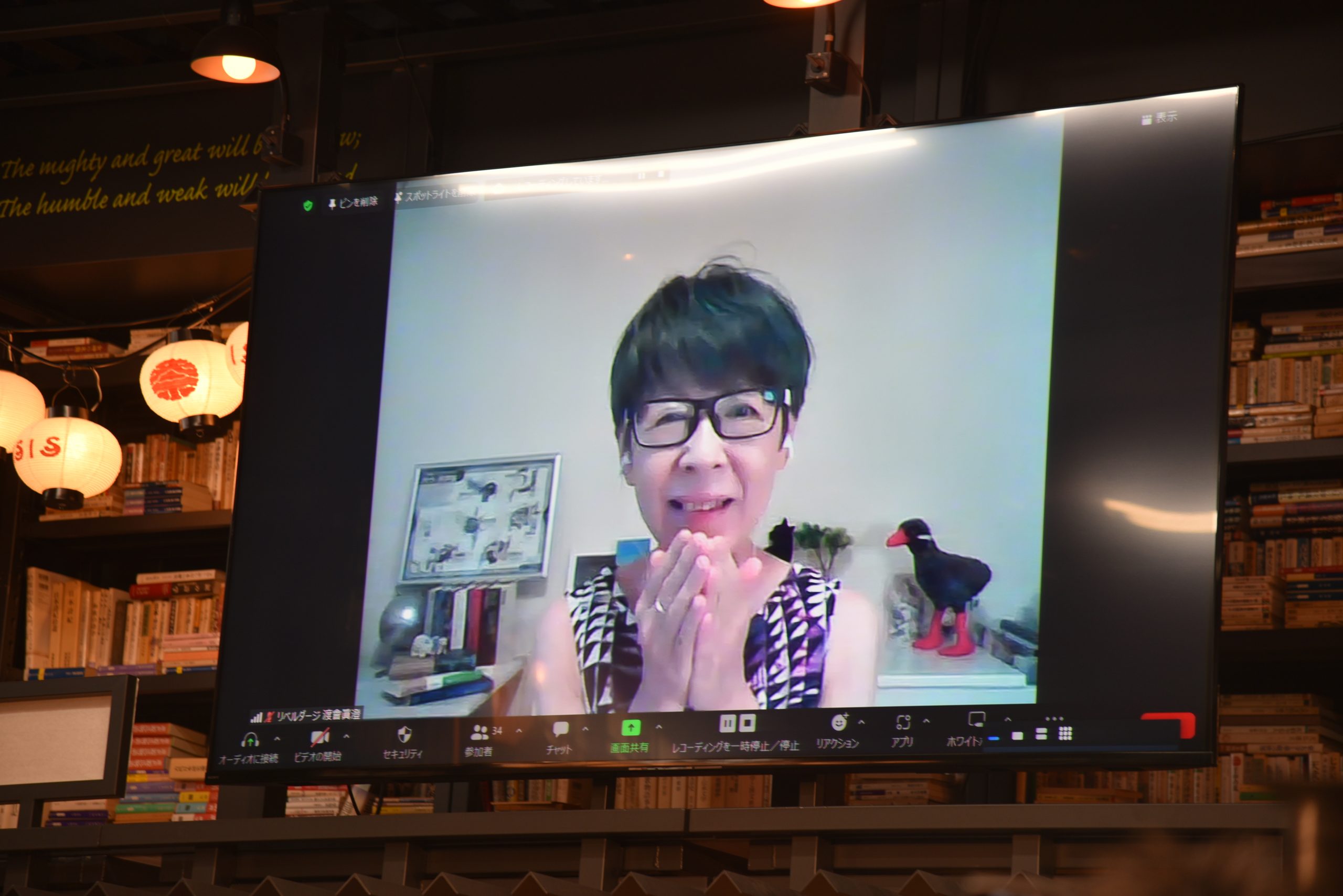 ▲数年前に沖縄に移り住んだ渡會さん。台風の影響でフライトが欠航になり泣く泣くZoomでの参加となったが、思いがけず歓喜の嵐が吹き荒れた。
