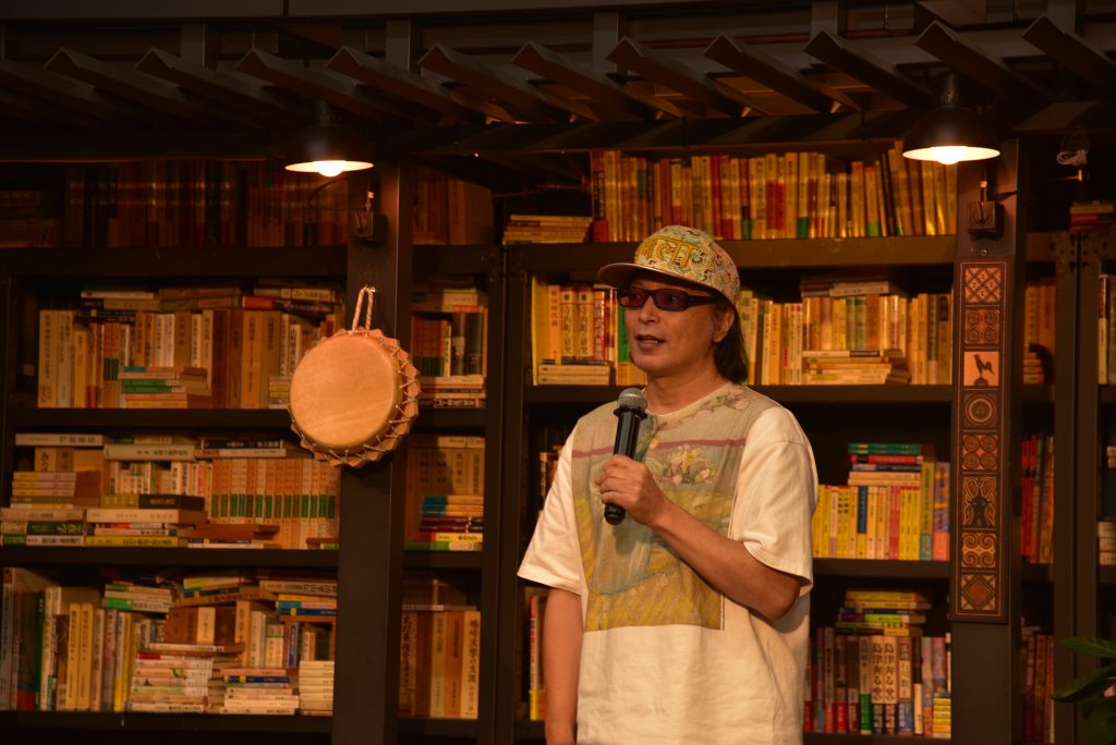 ▲倶楽部撮家でも活躍中の、写真好きな木藤さん。関西から駆けつけ、久しぶりの本楼登壇となった。左に映っているのは塚田さんの生け花。オプション賞は、群島マップと旅日記とは別に、好きな方法でのアウトプットにチャレンジをしたオプション作品の中から選ばれた。任意エントリーのお題であったが、写真、映像、音楽、ものづくりなど様々な方法で表現する作品が生まれた。
