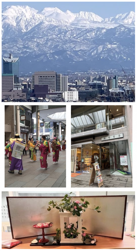 前夜の大雨の気配など微塵も感じさせない陽光に包まれた4月9日。葉桜の新緑が眩しい季節に、「日本シルースル」床の間編が富山県富山市の数寄書斎で開催された。会場の窓からは、遠くに神々しい立山連峰が見える。耳には三年振りに開催された「全日本チンドンコンクール」の、賑やかな音が響いていた。69 年続いてきたチンドンも年々参加者は減り続けている。これも失われつつある日本文化のひとつだろう。
