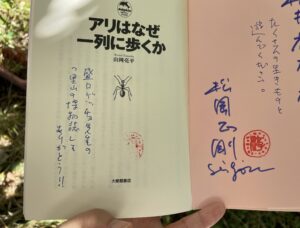 三冊の御礼を伝え、中でもアリの本を一番すぐに読んだこと、近況として千夜千冊エディションの『理科の教室』の帯文を気に入っているという話をした。