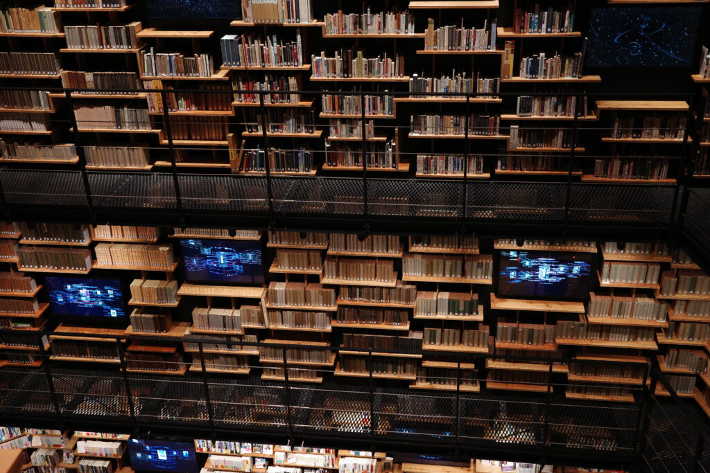 ミュージアム4階には、松岡校長が構想したエディットタウンが待つ。そのブックストリートには数万冊の本が、図書分類法とは異なる配架ルールによって、並べられている。一行は、その本の森を徘徊する。
