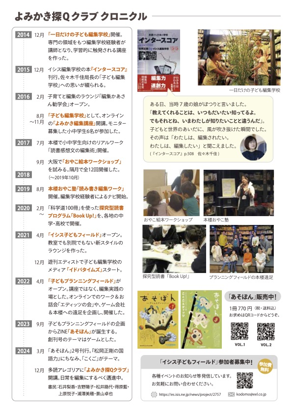 Q:よみかき探Qクラブは、「子ども編集学校」とはどのような関係ですか。