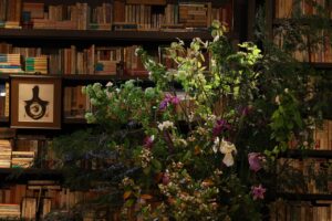 三部では本楼に集まった全員が、主客をとわず松岡正剛の遺影に花菖蒲と歌を捧げていった。お手伝いは春御堂堂人・佐藤悦子さんと塚田慎一さん。その光景を福田とおるさんは「生者死者の皆で今という空間を作っている」と感じたと伝えてくれた。花と歌による初めての試みを企画してきた四門堂運営陣にとって最高の手向けだと感じたが、一夜明ければ「千夜千冊絶筆篇」開始のしらせ。<顕>からの手向けが<冥>より応じられることも、ときにあるのかもしれない。