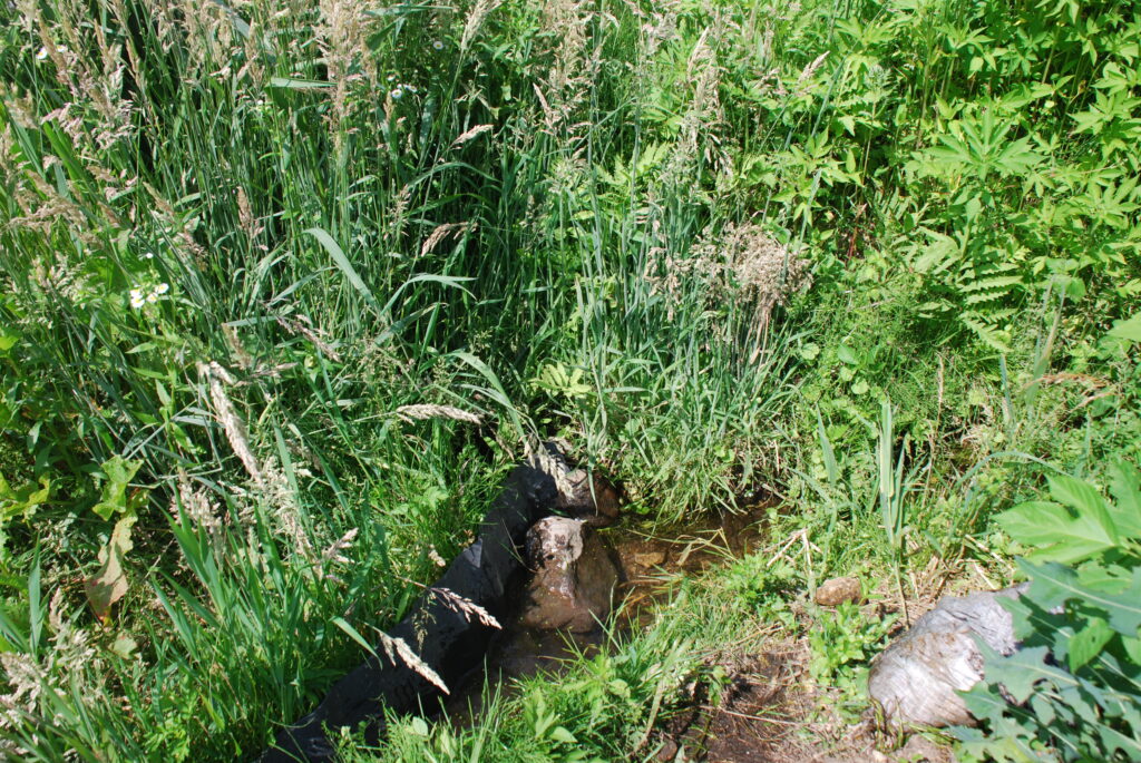 このあたりの田んぼは湧き水を利用している。雨が続くときは石で水の出口を塞ぎ、晴れたら開ける。