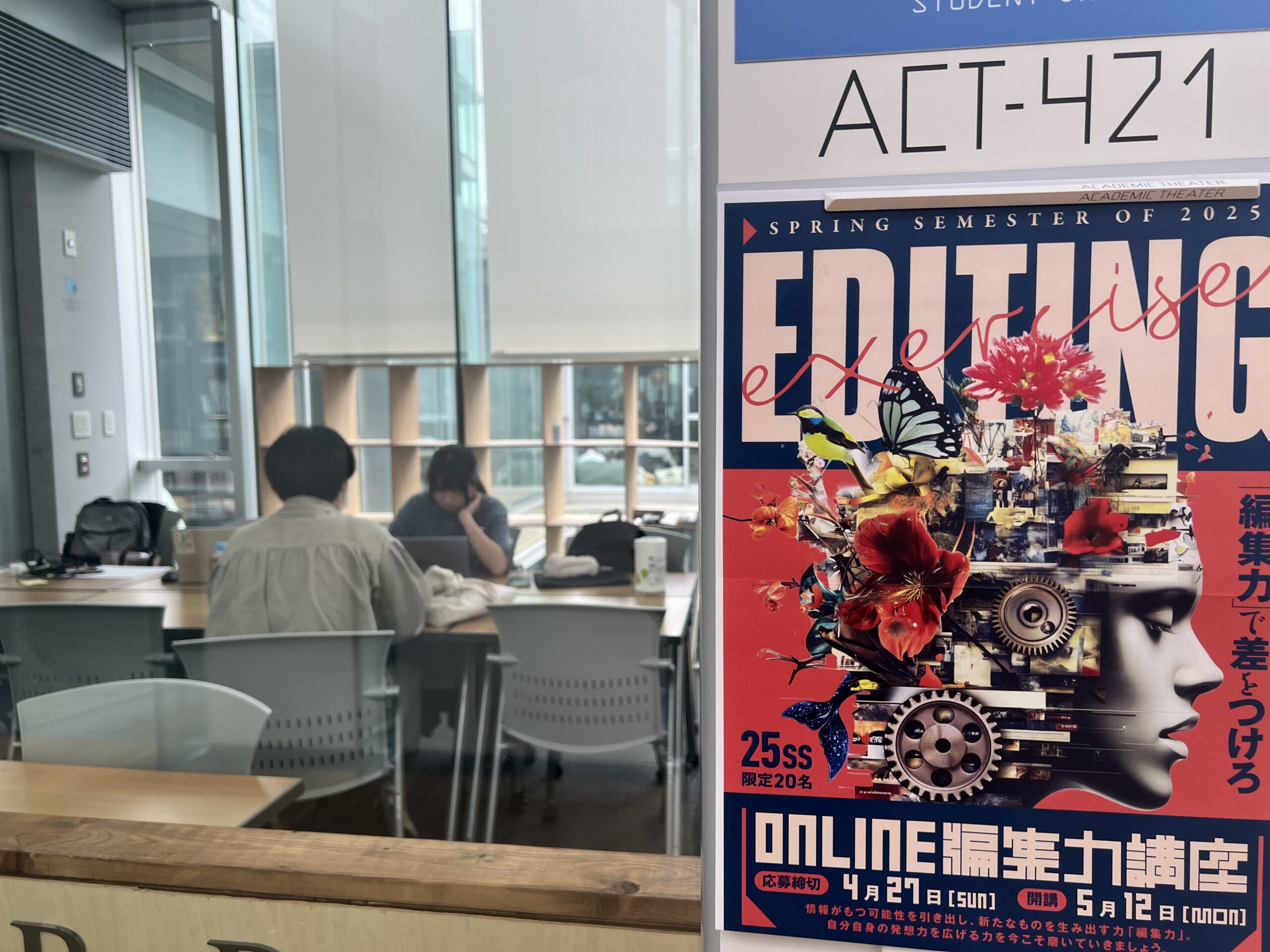 「編集力で差をつけろ」とかっこいポスターが(写真は3日目の様子)